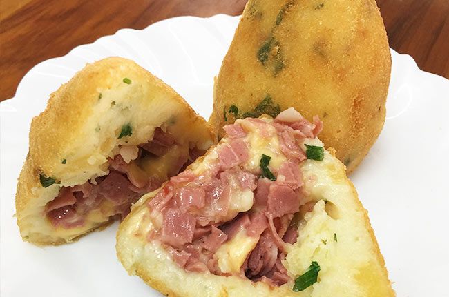 Croquete recheada com queijo;